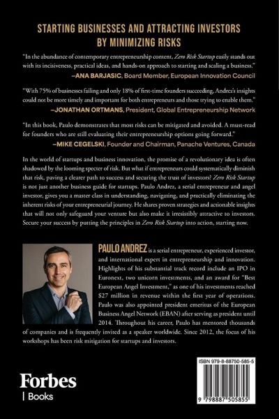 In the world of startups and business innovation, the promise of a revolutionary idea is often shadowed by the looming specter of risk. But what if entrepreneurs could systematically diminish that risk, paving a clearer path to success and securing the trust of investors? Zero Risk Startup is not just another business guide for startups. Paulo Andrez, a serial entrepreneur and angel investor, gives you a masterclass in understanding, navigating, and practically eliminating the inherent risks of your entrepreneurial journey. He shares proven strategies and actionable insights that will not only safeguard your venture but also make it irresistibly attractive to investors. Secure your success by putting the principles in Zero Risk Startup into action, starting now.