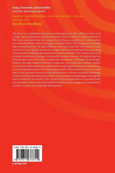 This book is a compilation of process, technologies and value added products such as high value biochemicals and biofuels produced from different waste biorefineries. The book is sectioned into four categories providing a comprehensive outlook about zero waste biorefinery and technologies associated with it. The emerging technologies that potentially put back the lignocellulosic waste, municipal solid waste and food waste into intrinsic recycling for production of high value biochemicals and bioenergy, along with associated challenges and opportunities are also included. The content also focuses on algal biorefineries leading to sustainable circular economy through production of broad spectrum of bioactive compounds, bioethanol, biobutanol, biohydrogen, biodiesel through integrated biorefinery approach. The volume also includes chapters on conversion technologies and mathematical models applied for process optimization. A sound foundation about the underlying principles ofbiorefineries and a up-to-date state-of-the-art based overview on the latest advances in terms of scientific knowledge, techno-economic developments and life cycle assessment methodologies of integrated waste biorefinery is provided. This volume will be of great interest to professionals, post-graduate students and policy makers involved in waste management, biorefineries, circular economy and sustainable development.