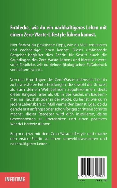 Entdecke, wie du ein nachhaltigeres Leben mit einem Zero-Waste-Lifestyle führen kannst.Hier findest du praktische Tipps, wie du Müll reduzieren und nachhaltiger leben kannst. Dieser umfassende Ratgeber begleitet dich Schritt für Schritt durch die Grundlagen des Zero-Waste-Lebens und bietet dir wertvolle Einblicke, wie du deinen ökologischen Fußabdruck verkleinern kannst.Von den Grundlagen des Zero-Waste-Lebensstils bis hin zu bewussteren Entscheidungen, die sowohl der Umwelt als auch deinem Wohlbefinden zugutekommen, deckt dieser Ratgeber alles ab. Ob in der Küche, im Badezimmer, im Haushalt oder in der Mode, du lernst, wie du in jedem Lebensbereich Müll vermeiden kannst. Egal, ob du gerade erst anfängst oder schon fortgeschrittene Schritte machst, dieser Ratgeber wird dich inspirieren, deine Gewohnheiten zu überdenken und einen positiven Wandel herbeizuführen.Beginne jetzt mit dem Zero-Waste-Lifestyle und mache den ersten Schritt zu einem umweltbewussteren und nachhaltigeren Leben.