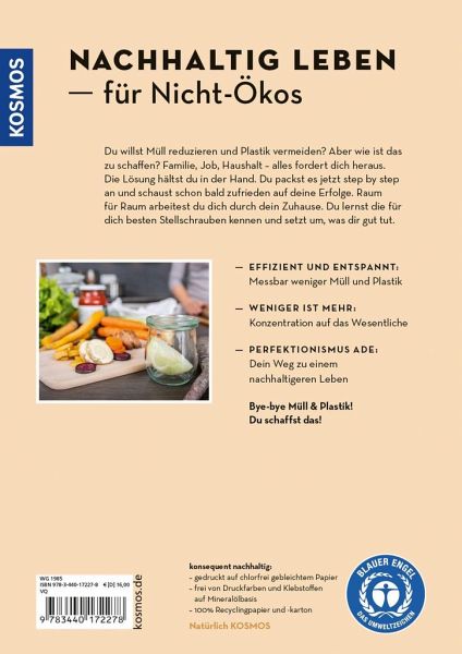 Viele Menschen möchten weniger Müll produzieren und Plastik vermeiden. Aber wie lässt sich mehr Nachhaltigkeit im stressigen Familienalltag umsetzen? Nachhaltigkeits-Coach Kerstin Mayer hat die Lösung. Raum für Raum arbeitet sie sich mit ihren Leser_innen durch das Zuhause und ermittelt die besten Stellschrauben. Checklisten für Wohnen und Einkaufen helfen dabei ebenso wie Produkttipps, Aufklärung über Schadstoffe und Siegel und To-do-Listen zum Loslegen. Niemand muss perfekt sein, sondern es geht darum, ohne Stress nachhaltiger zu leben - und das ist machbar!