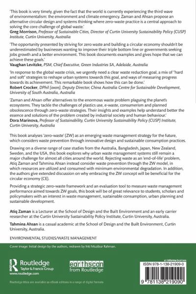 Atiq Zaman is a Lecturer at the School of Design and the Built Environment and an early carrier researcher at the Curtin University Sustainability Policy Institute, Curtin University, Australia. He has more than eight years of research experiences in the area of sustainable waste management and environmental assessment. He is an active advocate for ZW philosophy, activities, and practices. His research interests include sustainable waste management, collaborative consumption, circular economy, and sustainability in the built environment. Tahmina Ahsan is a casual academic at the School of Design and the Built Environment, Curtin University, Australia. She is an architect with a master's in environmental engineering and sustainable infrastructure from KTH, the Royal Institute of Technology, Sweden; and a PhD degree from the University of Adelaide, Australia. She has a keen interest in sustainable practices and design.