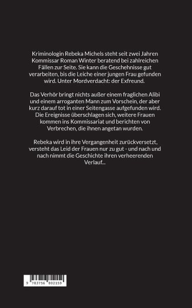 Kriminologin Rebeka Michels steht seit zwei Jahren Kommissar Roman Winter beratend bei zahlreichen Fällen zur Seite. Sie kann die Geschehnisse gut verarbeiten, bis die Leiche einer jungen Frau gefunden wird. Unter Mordverdacht: der Exfreund. Das Verhör bringt nichts außer einem fraglichen Alibi und einem arroganten Mann zum Vorschein, der aber kurz darauf tot in einer Seitengasse aufgefunden wird. Die Ereignisse überschlagen sich, weitere Frauen kommen ins Kommissariat und berichten von Verbrechen, die ihnen angetan wurden. Rebeka wird in ihre Vergangenheit zurückversetzt, versteht das Leid der Frauen nur zu gut - und nach und nach nimmt die Geschichte ihren verheerenden Verlauf...