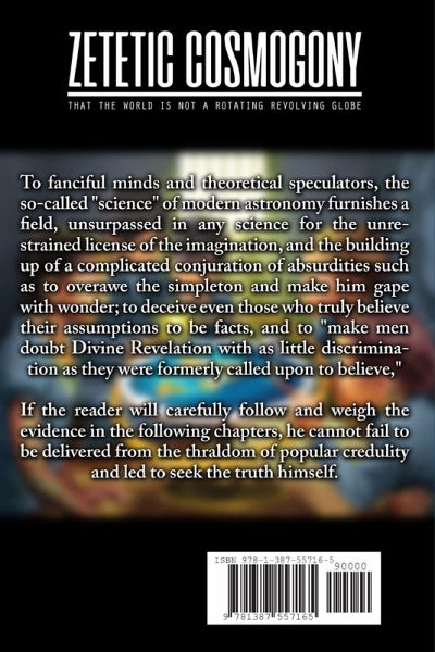 To fanciful minds and theoretical speculators, the so-called ""science"" of modern astronomy furnishes a field, unsurpassed in any science for the unrestrained license of the imagination, and the building up of a complicated conjuration of absurdities such as to overawe the simpleton and make him gape with wonder; to deceive even those who truly believe their assumptions to be facts, and to ""make men doubt Divine Revelation with as little discrimination as they were formerly called upon to believe,"" If the reader will carefully follow and weigh the evidence in the following chapters, he cannot fail to be delivered from the thraldom of popular credulity and led to seek the truth himself.