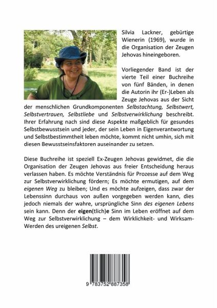 Vorliegender Band ist der vierte Teil der Buchreihe "Zeugen Jehovas und das Selbst", bestehend aus fünf Bänden, in denen die Autorin ihr (Er-)Leben als Zeuge Jehovas aus der Sicht der Grundkomponenten des Mensch-Seins Selbstachtung, Selbstwert, Selbstvertrauen, Selbstliebe und Selbstverwirklichung beschreibt. Ihrer Erfahrung nach sind diese Aspekte maßgeblich für gesundes Selbstbewusstsein und jeder, der sein Leben in Eigenverantwortung und Selbstbestimmtheit leben möchte, kommt nicht umhin, sich mit diesen Bewusstseinsfaktoren auseinanderzusetzen.Diese Buchreihe ist speziell Ex-Zeugen Jehovas gewidmet, die die Organisation aus freier Entscheidung heraus verlassen haben. Es möchte Verständnis für Prozesse auf dem Weg zur Selbstverwirklichung fördern; es möchte ermutigen, auf dem EIGENEN WEG zu bleiben; und es möchte aufzeigen, dass der Lebenssinn zwar durchaus von außen vorgegeben werden kann, dies jedoch niemals der wahre, ursprüngliche Sinn des eigenen Lebens sein kann. Denn der eigen(tlich)e Sinn im Leben eröffnet sich auf dem Weg zur Selbstverwirklichung - dem Wirklichkeit- und Wirksam-Werden des ureigenen Selbstes.