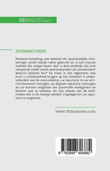 Personal branding, ook bekend als "persoonlijke marketing", wordt steeds vaker gebruikt en is een nieuwe realiteit die zorgen baart. Wat is deze praktijk, die zich verspreidt onder zowel werkzoekenden als aanwervers? Waaruit bestaat het? En meer in het algemeen, hoe kunt u zichtbaarheid krijgen op het internet? U onderscheiden van de concurrentie, uw reputatie in uw activiteitensector vestigen, uw digitale reputatie verzorgen en uw kansen vergroten om potentiële werkgevers en klanten aan te trekken; dit zijn enkele van de technieken die in dit boekje worden uitgelegd om uw reputatie te vergroten.