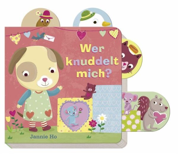 Das Hundemädchen Bella möchte geknuddelt werden. Aber wer kann am besten knuddeln? Die großen Ziehelemente sind perfekt für kleine Kinderhände.