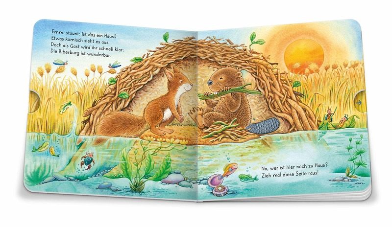 Mit wem teilt sich das Eichhörnchen seine Baumkrone? Einmal ziehen: mit der Amsel. Nochmal ziehen: mit der Raupe im Apfel. Zweimal Rausziehen, zweimal Nachschauen - und eine Überraschung erleben!