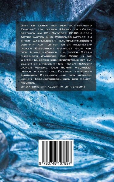 Gibt es Leben auf dem Jupitermond Europa? Um dieses Rätsel zu lösen, brechen am 23. Oktober 2028 sieben Astronauten und Wissenschaftler zu einer waghalsigen Raumfahrtmission dorthin auf. Unter einer kilometerdicken Eisschicht befindet sich auf dem Himmelskörper ein tiefer Ozean flüssigen Wassers. Die Reise in die Weiten unseres Sonnensystems ist zugleich eine Reise in die Tiefen menschlicher Psyche. Der Roman wechselt immer wieder die Ebenen zwischen äußeren Gefahren und den menschlichen Herausforderungen der Hauptfiguren. Und - Sind wir allein im Universum?