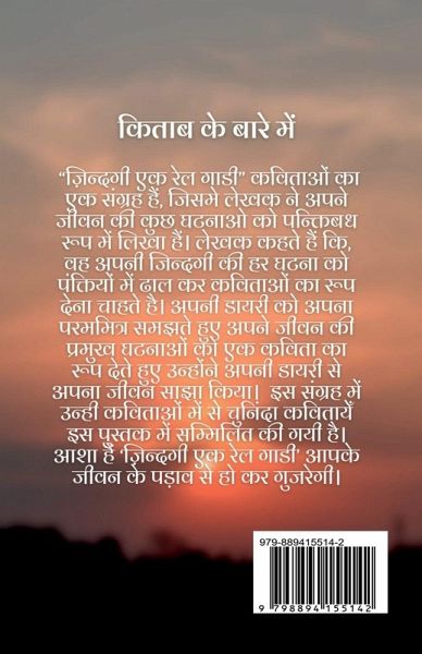 "Zindagi Ek Rail Gadi" is a collection of poems, in which the author has written the events of his life. The author says that he calms his mind by putting every incident of his life into poetry. Considering his diary as his best friend, he shared life through his diary, giving the major events of his life a form of poetry. Selected poems from that collection have been included in this book. We hope that 'Zindagi Ek Rail Gaadi' will pass through this phase of your life.