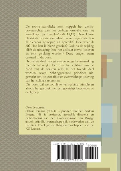 De rooms-katholieke kerk koppelt het dienstpriesterschap aan het celibaat 'omwille van het koninkrijk der hemelen' (Mt 19,12). Deze keuze plaatst priesterkandidaten voor vragen als: ben ik hiervoor geroepen en geschikt? Hoe wéét ik dit? Hoe kan ik hierin groeien? Ook na de wijding blijft de uitdaging: hoe het celibaat zinvol beleven en erin gelukkig worden? Deze vragen staan centraal in dit boek. Het eerste deel beoogt een grondige kennismaking met de kerkelijke leer over het celibaat aan de hand van de teksten zelf. In het tweede deel worden zeven richtinggevende principes uitgewerkt om tot een rijke en evenwichtige beleving van het celibaat te komen. Dit boek wil persoonlijke verwerking stimuleren alsook het gesprek met een geestelijk begeleider of deelgroep. De voornaamste doelgroepen zijn: wie zich voorbereiden op een wijding; vormingsverantwoordelijken; geestelijke begeleiders; priesters, religieuzen en al wie zoekt naar een zinvolle beleving van het celibaat.