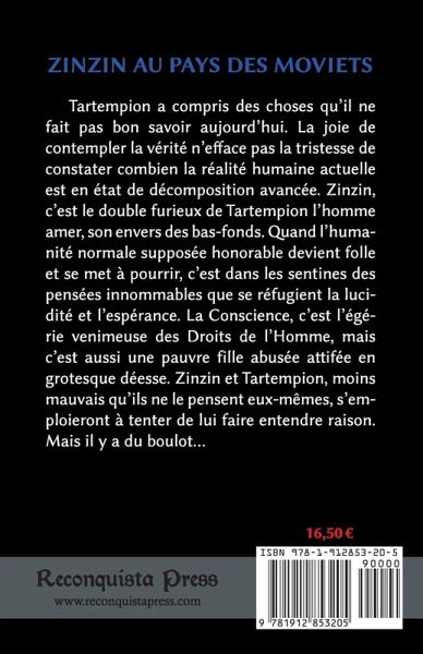 Tartempion a compris des choses qu’il ne fait pas bon savoir aujourd’hui. La joie de contempler la vérité n’efface pas la tristesse de constater combien la réalité humaine actuelle est en état de décomposition avancée. Zinzin, c’est le double furieux de Tartempion l’homme amer, son envers des bas-fonds. Quand l’humanité normale supposée honorable devient folle et se met à pourrir, c’est dans les sentines des pensées innommables que se réfugient la lucidité et l’espérance. La Conscience, c’est l’égérie venimeuse des Droits de l’Homme, mais c’est aussi une pauvre fille abusée attifée en grotesque déesse. Zinzin et Tartempion, moins mauvais qu’ils ne le pensent eux-mêmes, s’emploieront à tenter de lui faire entendre raison. Mais il y a du boulot…