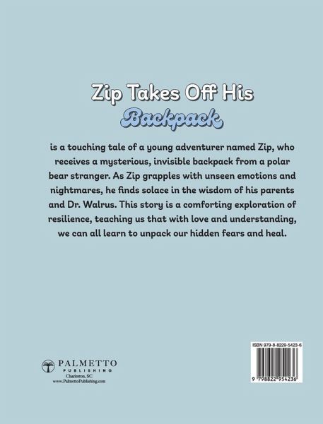 Join Zip's journey as he battles unseen burdens, bad dreams, and isolation. Guided by his parents and Dr. Walrus, he learns to understand and conquer his fears. A tale of resilience for kids and adults alike. In Zip Takes Off His Backpack, we meet Zip, an adventurous young character who unexpectedly receives a backpack from a stranger polar bear. This isn't just any backpack, though. It's a backpack that only Zip can see, and it's filled with feelings and emotions that he doesn't quite understand. This invisible load becomes a challenge for Zip, causing him to isolate himself and experience…mehr