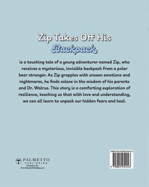 Join Zip's journey as he battles unseen burdens, bad dreams, and isolation. Guided by his parents and Dr. Walrus, he learns to understand and conquer his fears. A tale of resilience for kids and adults alike. In Zip Takes Off His Backpack, we meet Zip, an adventurous young character who unexpectedly receives a backpack from a stranger polar bear. This isn't just any backpack, though. It's a backpack that only Zip can see, and it's filled with feelings and emotions that he doesn't quite understand. This invisible load becomes a challenge for Zip, causing him to isolate himself and experience unsettling dreams. As Zip navigates this unexpected journey, he isn't alone. His loving parents are by his side, offering comfort and support. They encourage him to share his feelings, helping him to understand that it's okay to feel scared and confused. Enter Dr. Walrus, a wise and understanding figure who helps Zip explore his feelings in a safe and comforting environment. Through their sessions, Zip begins to understand the weight he's been carrying. He learns to unpack his feelings, one by one, and slowly, he starts to heal. Zip Takes Off His Backpack is a heartwarming story of resilience and healing. It's a tale of a young character's journey to understand his emotions and overcome his fears. It's a story that reminds us that it's okay to ask for help and that even the heaviest burdens can be lightened with love, understanding, and support. This book is a gentle exploration of complex emotions, making it an excellent resource for anyone seeking to understand trauma experiences from a child's perspective. It's a story that will resonate with readers of all ages, reminding us all of the power of resilience and the importance of emotional well-being.