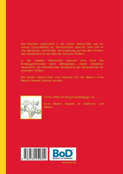 Das Büchlein beschreibt in der ersten Geschichte, wie ein kleiner Zirkus-Elefant ein Seniorenheim besucht. Dort trifft er alte Menschen und Kinder. Die Erzählung soll bei den Kindern das Verständnis für die Welt der Senioren fördern.In der zweiten Geschichte besucht eine Oma die Kindergartenkinder beim Mittagessen. Dabei entstehen Gespräche, die ebenfalls das Verständnis der Generationen für einandern fördern.Die beiden Geschichten sind liebevoll von der Malerin Anna Beatrix Hassert illustriert worden.