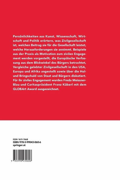 Persönlichkeiten aus Kunst, Wissenschaft, Wirtschaft und Politik erörtern, was Zivilgesellschaft ist, welchen Beitrag sie für die Gesellschaft leistet, welche Herausforderungen sie annimmt. Beispiele aus der Praxis als Motivation zum zivilen Engagement werden vorgestellt, die Europäische Verfassung aus dem Blickwinkel des Bürgers betrachtet, Vergleiche gelebter Zivilgesellschaft in den USA, Europa und Afrika angestellt sowie über die Hol- und Bringschuld von Staat und Bürgern diskutiert. Für ihr ziviles Engagement wurden Freda Meissner-Blau und Caritaspräsident Franz Küberl mit dem GLOBArt Award ausgezeichnet.