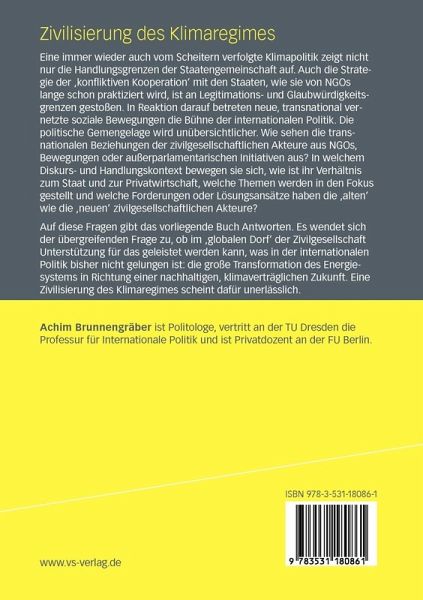 Eine immer wieder auch vom Scheitern verfolgte Klimapolitik zeigt nicht nur die Handlungsgrenzen der Staatengemeinschaft auf. Auch die Strategie der 'konfliktiven Kooperation' mit den Staaten, wie sie von NGOs lange schon praktiziert wird, ist an Legitimations- und Glaubwürdigkeitsgrenzen gestoßen. In Reaktion darauf betreten neue, transnational vernetzte soziale Bewegungen die Bühne der internationalen Politik. Die politische Gemengelage wird unübersichtlicher. Wie sehen die transnationalen Beziehungen der zivilgesellschaftlichen Akteure aus NGOs, Bewegungen oder außerparlamentarischen Initiativen aus? In welchem Diskurs- und Handlungskontext bewegen sie sich, wie ist ihr Verhältnis zum Staat und zur Privatwirtschaft, welche Themen werden in den Fokus gestellt und welche Forderungen oder Lösungsansätze haben die 'alten' wie die 'neuen' zivilgesellschaftlichen Akteure? Auf diese Fragen gibt das vorliegende Buch Antworten. Es wendet sich der übergreifenden Frage zu, ob im 'globalen Dorf' der Zivilgesellschaft Unterstützung für das geleistet werden kann, was in der internationalen Politik bisher nicht gelungen ist: die große Transformation des Energiesystems in Richtung einer nachhaltigen, klimaverträglichen Zukunft. Eine Zivilisierung des Klimaregimes scheint dafür unerlässlich.