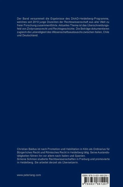 Der Band versammelt die Ergebnisse des DAAD-Heidelberg-Programms, welches seit 2010 junge Dozenten der Rechtswissenschaft aus aller Welt zu freier Forschung zusammenführte. Aktuelles Thema ist das Überschneidungsfeld von Zivilprozessrecht und Rechtsgeschichte. Die Beiträge dokumentieren zugleich die Lebendigkeit des Wissenschaftsaustauschs zwischen Italien, Chile und Deutschland.