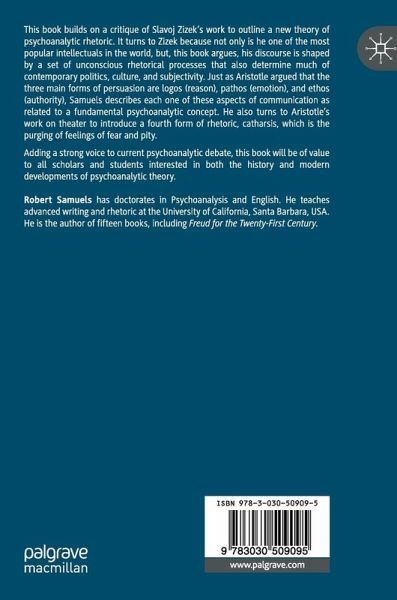 This book builds on a critique of Slavoj Zizek's work to outline a new theory of psychoanalytic rhetoric. It turns to Zizek because not only is he one of the most popular intellectuals in the world, but, this book argues, his discourse is shaped by a set of unconscious rhetorical processes that also determine much of contemporary politics, culture, and subjectivity. Just as Aristotle argued that the three main forms of persuasion are logos (reason), pathos (emotion), and ethos (authority), Samuels describes each one of these aspects of communication as related to a fundamental psychoanalytic concept. He also turns to Aristotle's work on theater to introduce a fourth form of rhetoric, catharsis, which is the purging of feelings of fear and pity.