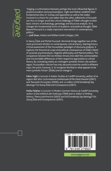 'Staging a confrontation between perhaps the most influential figures in poststructuralism and psychoanalysis, Vighi and Feldner establish their fundamental sites of overland and opposition as well as the stakes involved in a choice for one rather than the other. Adherents of Foucault can thus no longer avoid the critical challenge of i ek's thought to their basic notions of archeology, genealogy and discourse analysis. As it changes the fundamental terms of academic and political thought, i ek : Beyond Foucault is a vitally important intervention in contemporary politics.' - Jodi Dean, Hobart and William Smith Colleges, USA