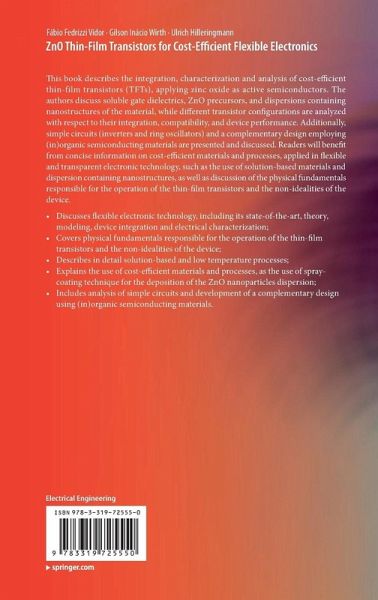 This book describes the integration, characterization and analysis of cost-efficient thin-film transistors (TFTs), applying zinc oxide as active semiconductors. The authors discuss soluble gate dielectrics, ZnO precursors, and dispersions containing nanostructures of the material, while different transistor configurations are analyzed with respect to their integration, compatibility, and device performance. Additionally, simple circuits (inverters and ring oscillators) and a complementary design employing (in)organic semiconducting materials are presented and discussed. Readers will benefit from concise information on cost-efficient materials and processes, applied in flexible and transparent electronic technology, such as the use of solution-based materials and dispersion containing nanostructures, as well as discussion of the physical fundamentals responsible for the operation of the thin-film transistors and the non-idealities of the device.