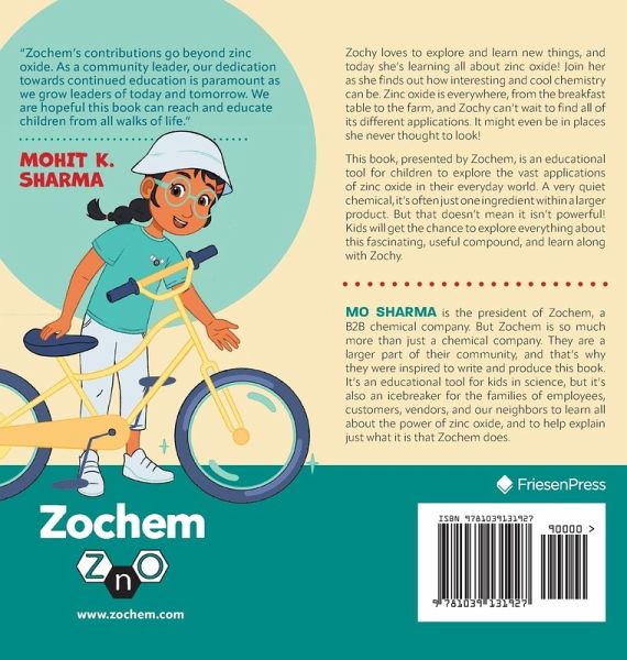 Zochy loves to explore and learn new things, and today she's learning all about zinc oxide! Join her as she finds out how interesting and cool chemistry can be. Zinc oxide is everywhere, from the breakfast table to the farm, and Zochy can't wait to find all of its different applications. It might even be in places she never thought to look! This book, presented by Zochem, is an educational tool for children to explore the vast applications of zinc oxide in their everyday world. A very quiet chemical, it's often just one ingredient within a larger product. But that doesn't mean it isn't powerful! Kids will get the chance to explore everything about this fascinating, useful compound, and learn along with Zochy.