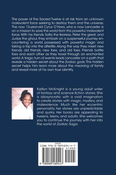 Zodiac Saga 2: The Balance of Power, is the second book in the award-winning fantasy sci-fi series. Zodiac Saga 2 continues the story of a bullied young boy named Cyrus O'Hara, a believer in Zodiac gods. Cyrus is now known as Lancaster in The Balance of Power. The Zodiac gods are known as the Sacred Twelve or the Elders of Zodia. There is an unknown powerful force seeking to destroy the Zodiac gods and the entire universe. Lancaster embarks upon a suspenseful journey with friends Sofia the fearless, Peter the great, and Judas the ghoul to save the world. Along the way they will encounter new friends, old friends, new foes, and old foes. A tragic turn of events leads Lancaster on a path that reveals a hidden secret about the Sacred Twelve. This secret helps him learn more about the meaning of family and his true identity.