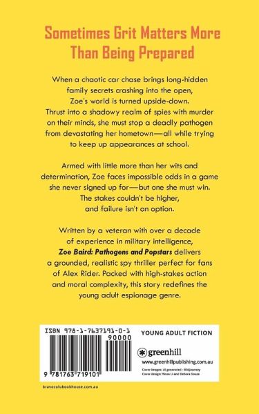 When a chaotic car chase brings long-hidden family secrets crashing into the open, Zoe's world is turned upside-down. Thrust into a shadowy realm of spies with murder on their minds, she must stop a deadly pathogen from devastating her hometown-all while trying to keep up appearances at school. Armed with little more than her wits and determination, Zoe faces impossible odds in a game she never signed up for-but one she must win. The stakes couldn't be higher, and failure isn't an option. Written by a veteran with over a decade of experience in military intelligence, Zoe Baird: Pathogens and Popstars delivers a grounded, realistic spy thriller perfect for fans of Alex Rider. Packed with high-stakes action and moral complexity, this story redefines the young adult espionage genre.