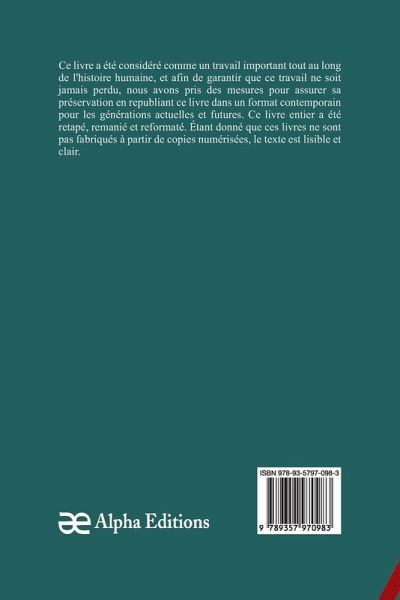 Zola, un livre classique et rare qui a été considéré comme essentiel tout au long de l'histoire de l'humanité, pour que cet ouvrage ne soit jamais oublié, nous chez Alpha Editions avons fait des efforts pour sa préservation en rééditant ce livre dans un format moderne pour les générations présentes et futures. Tout ce livre a été reformaté, retapé et conçu. Ces livres ne sont pas constitués de copies numérisées de leur oeuvre originale et le texte est donc clair et lisible.