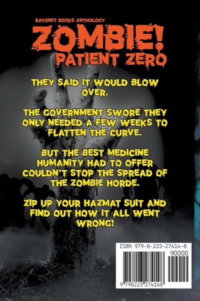 Zombie! Patient Zero: A Bayonet Books Anthology They said it would all blow over. The government swore they only needed a few weeks to flatten the curve. But the best medicine humanity had to offer couldn't stop the spread of the zombie horde. Zip up your HazMat suit and find out how it all went wrong! Buy your copy today!