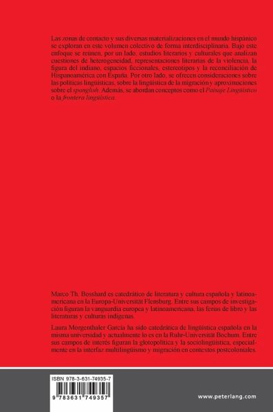 Las zonas de contacto y sus diversas materializaciones en el mundo hispánico se exploran en este volumen colectivo de forma interdisciplinaria. Bajo este enfoque se reúnen, por un lado, estudios literarios y culturales que analizan cuestiones de heterogeneidad, representaciones literarias de la violencia, la figura del indiano, espacios ficcionales, estereotipos y la reconciliación de Hispanoamérica con España. Por otro lado, se ofrecen consideraciones sobre las políticas lingüísticas, sobre la lingüística de la migración y aproximaciones sobre el spanglish. Además, se abordan conceptos como el Paisaje Lingüístico o la frontera lingüística.