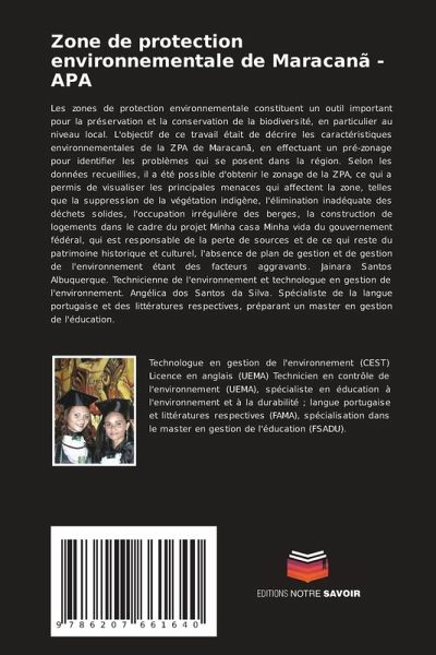 Les zones de protection environnementale constituent un outil important pour la préservation et la conservation de la biodiversité, en particulier au niveau local. L'objectif de ce travail était de décrire les caractéristiques environnementales de la ZPA de Maracanã, en effectuant un pré-zonage pour identifier les problèmes qui se posent dans la région. Selon les données recueillies, il a été possible d'obtenir le zonage de la ZPA, ce qui a permis de visualiser les principales menaces qui affectent la zone, telles que la suppression de la végétation indigène, l'élimination inadéquate des déchets solides, l'occupation irrégulière des berges, la construction de logements dans le cadre du projet Minha casa Minha vida du gouvernement fédéral, qui est responsable de la perte de sources et de ce qui reste du patrimoine historique et culturel, l'absence de plan de gestion et de gestion de l'environnement étant des facteurs aggravants. Jainara Santos Albuquerque. Technicienne de l'environnement et technologue en gestion de l'environnement. Angélica dos Santos da Silva. Spécialiste de la langue portugaise et des littératures respectives, préparant un master en gestion de l'éducation.