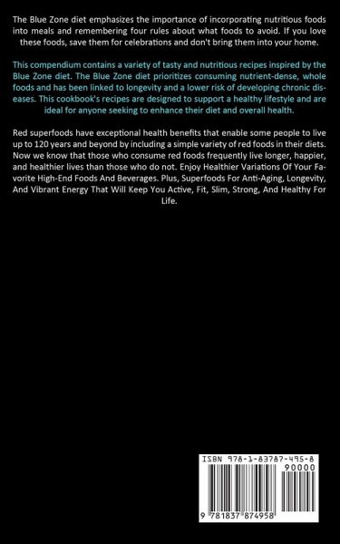 The Blue Zone diet emphasizes the importance of incorporating nutritious foods into meals and remembering four rules about what foods to avoid. If you love these foods, save them for celebrations and don't bring them into your home. This compendium contains a variety of tasty and nutritious recipes inspired by the Blue Zone diet. The Blue Zone diet prioritizes consuming nutrient-dense, whole foods and has been linked to longevity and a lower risk of developing chronic diseases. This cookbook's recipes are designed to support a healthy lifestyle and are ideal for anyone seeking to enhance their diet and overall health. Red superfoods have exceptional health benefits that enable some people to live up to 120 years and beyond by including a simple variety of red foods in their diets. Now we know that those who consume red foods frequently live longer, happier, and healthier lives than those who do not. Enjoy Healthier Variations Of Your Favorite High-End Foods And Beverages. Plus, Superfoods For Anti-Aging, Longevity, And Vibrant Energy That Will Keep You Active, Fit, Slim, Strong, And Healthy For Life.