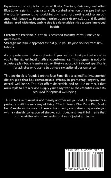 Experience the exquisite tastes of Ikaria, Sardinia, Okinawa, and other Blue Zone regions through a carefully curated selection of recipes that authentically represent the nourishing and health-promoting cuisines associated with longevity. Featuring nutrient-dense Greek salads and flavorful dishes laced with miso, each recipe is a delectable stride toward improved health. Imagine this: Customized Precision Nutrition is designed to optimize your body's requirements. Strategic metabolic approaches that push you beyond your current limitations. A comprehensive metamorphosis of your entire physique that elevates you to the highest level of athletic performance. This program is not only a dietary plan but a transformative lifestyle approach tailored specifically for athletes who aspire to achieve exceptional performance. This cookbook is founded on the Blue Zone diet, a scientifically supported dietary plan that has demonstrated efficacy in promoting longevity and overall well-being. This diet offers delectable and nourishing meals that are simple to prepare and supply your body with all the essential elements required for optimal well-being. This extensive manual is not merely another recipe book; it represents a profound shift in one's way of living. "The Ultimate Blue Zone Diet Cookbook" explores the core of these extraordinary civilizations to provide you with a valuable collection of simple, nutritious, and healthful meals that can contribute to an extended and more joyful existence.