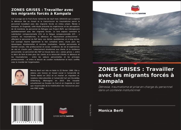 Cet ouvrage est le fruit d'une recherche de neuf mois (2014/15) qui a exploré la détresse liée au travail et la transmission du traumatisme parmi le personnel travaillant avec des migrants forcés en milieu urbain. Menée à Kampala, en Ouganda, cette étude présente les expériences et les perceptions de 16 membres du personnel du Refugee Law Project (RLP), qui interagissent quotidiennement avec des migrants forcés. Le livre expose comment la satisfaction compassionnelle (CS) et la fatigue compassionnelle (CF) - y compris les traumatismes, la détresse et l'épuisement professionnel - affectent le personnel du RLP dans ses tâches quotidiennes et à long terme. Cet ouvrage illustre également le lien complexe entre, d'une part, les dynamiques émotionnelles et sociales (motivation, identité personnelle et identité sociale, rôle professionnel et social, conditions de vie et expériences de vie) et, d'autre part, l'attachement émotionnel aux clients et la résilience personnelle. Le personnel des RLP se trouve dans ces ' zones grises ', entre le désir de faire le bien pour les clients et la nécessité d'éviter la détresse et les traumatismes ; entre les valeurs personnelles et les principes professionnels ; et entre le besoin de soutien institutionnel et leurs conflits avec le mandat de l'organisation.