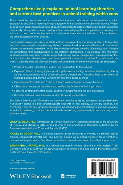Comprehensively explains animal learning theories and current best practices in animal training within zoos This accessible, up-to-date book on animal training in a zoo/aquaria context provides a unified approach to zoo animal learning, bringing together the art and science of animal training. Written by experts in academia and working zoos, it incorporates the latest information from the scientific community along with current best practice, demystifying the complexities of training zoo animals. In doing so, it teaches readers how to effectively train animals and to fully understand the consequences of their actions. Zoo Animal Learning and Training starts with an overview of animal learning theory. It describes the main categories of animal learning styles; considers the diverse natural history of zoo animals; reviews the research undertaken which demonstrates ultimate benefits of learning; and highlights the advantages and disadvantages of the different approaches. It also shows how the direct application of learning theory can be integrated into zoo animal management; discusses how other factors might affect development; and investigates situations and activities from which animals learn. It also explores the theoretical basis that determines whether enrichments are successful. * Provides an easily accessibly, jargon-free introduction to the subject * Explores different training styles, providing theoretical background to animal learning theory as well as considerations for practical training programme - including how to set them up, manage people and animals within them and their consequences * Includes effective skills and 'rules of thumb' from professional animal trainers * Offers commentary on the ethical and welfare implications of training in zoos * Features contributions from global experts in academia and the zoo profession * Uniquely features both academic and professional perspectives Zoo Animal Learning and Training is an important book for students, academics and professionals. It is ideally suited to senior undergraduate students in zoo biology, veterinary science, and psychology, and for post-graduate students in animal management, behaviour and conservation, as well as zoo biology. It is also beneficial to those working professionally in zoos and aquaria at different levels.Hinweis: Dieser Artikel kann nur an eine deutsche Lieferadresse ausgeliefert werden.