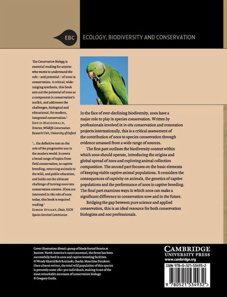 In the face of ever-declining biodiversity, zoos have a major role to play in species conservation. Written by professionals involved in in situ conservation and restoration projects internationally, this is a critical assessment of the contribution of zoos to species conservation through evidence amassed from a wide range of sources. The first part outlines the biodiversity context within which zoos should operate, introducing the origins and global spread of zoos and exploring animal collection composition. The second part focuses on the basic elements of keeping viable captive animal populations. It considers the consequences of captivity on animals, the genetics of captive populations and the performance of zoos in captive breeding. The final part examines ways in which zoos can make a significant difference to conservation now and in the future. Bridging the gap between pure science and applied conservation, this is an ideal resource for both conservation biologists and zoo professionals.