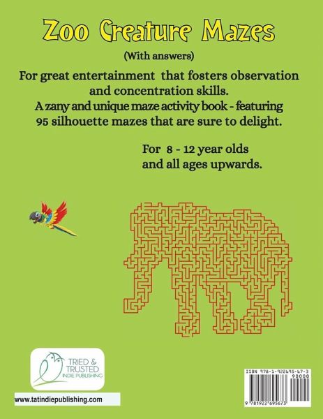 Unique mazes created from zoo animal shapes . (With answers) For great entertainment that fosters observation and concentration skills. A zany and unique maze activity book - featuring 95 silhouette mazes that are sure to delight. For 8 - 12 year olds and all ages upwards.