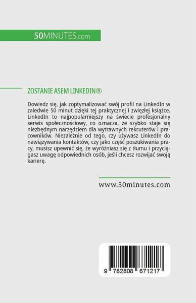 Dowiedz si¿, jak zoptymalizowä swój profil na LinkedIn w zaledwie 50 minut dzi¿ki tej praktycznej i zwi¿z¿ej ksi¿¿ce. LinkedIn to najpopularniejszy na ¿wiecie profesjonalny serwis spo¿eczno¿ciowy, co oznacza, ¿e szybko staje si¿ niezb¿dnym narz¿dziem dla wytrawnych rekruterów i pracowników. Niezale¿nie od tego, czy u¿ywasz LinkedIn do nawi¿zywania kontaktów, czy jako cz¿¿¿ poszukiwania pracy, musisz upewni¿ si¿, ¿e wyró¿niasz si¿ z t¿umu i przyci¿gasz uwag¿ odpowiednich osób, je¿li chcesz rozwijä swoj¿ karier¿. Z tej ksi¿¿ki dowiesz si¿, jak zbudowä silny profil, rozwin¿¿ sie¿ warto¿ciowych kontaktów i wykorzystä LinkedIn do zarz¿dzania swoj¿ zawodow¿ reputacj¿. Zawiera równie¿ wskazówki, jak zwi¿kszy¿ swoj¿ widoczno¿¿, kilka powszechnych pu¿apek, których nale¿y unikä, oraz wprowadzenie do korzy¿ci p¿yn¿cych z posiadania konta LinkedIn Premium, daj¿c Ci wszystko, czego potrzebujesz, aby zwi¿kszy¿ swoje szanse na sukces.
