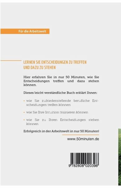 Alles über berufliche Entscheidungsfindung in nur 50 Minuten Sie tun sich schwer dabei, Entscheidungen zu treffen? Sie haben Angst vor den Auswirkungen der Entscheidung? Lassen Sie sich davon nicht abschrecken, denn jede Entscheidung ist wichtig und Sie können daraus lernen. In diesem praktischen Guide finden Sie alles über den Entscheidungsprozess, Techniken zur Entscheidungsfindung und dem Einstehen für Ihre Entscheidungen. Nach 50 Minuten können Sie: ¿ eine Introspektion durchführen ¿ die Situation analysieren ¿ Ziele definieren und vieles mehr Starten Sie mit diesen praktischen Tipps voll durch! Über 50MINUTEN.DE Für die Arbeitswelt Was bringt Sie im Job weiter? Die Serie Für die Arbeitswelt der Reihe 50Minuten ist für alle geeignet, die sich ¿ egal auf welchem Abschnitt ihrer Karriere ¿ neue persönliche und berufliche Kompetenzen aneignen, ihr Potenzial optimal ausschöpfen oder einfach ihre Work-Life-Balance hinterfragen wollen. Unsere kompakten Titel enthalten nicht nur eine von Experten erstellte Übersicht über die relevante Theorie, sondern auch konkrete Anleitungen, die von zahlreichen Beispielen unterstützt werden. Die einfache und leicht verständliche Formulierung der komplexen Sachverhalte ist somit der ideale Ausgangspunkt für Angestellte, Arbeitgeber und Arbeitssuchende.