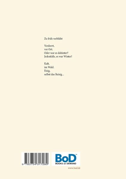 Zu früh verblühtVerdorrt,vor Ort.Oder war es dahinter?Jedenfalls, es war Winter!Kalt,im Wald.Eisig,selbst das Reisig...