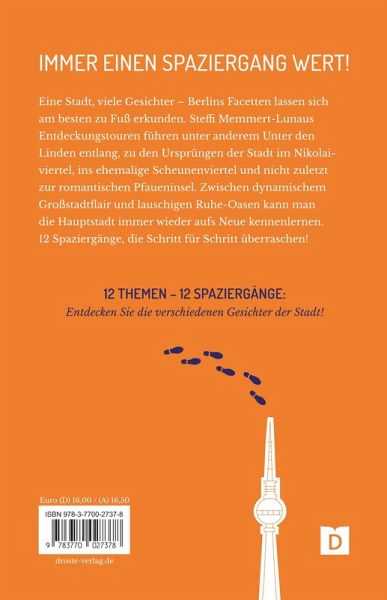Eine Stadt, viele Gesichter - Berlins Facetten lassen sich am besten zu Fuß erkunden. Steffi Memmert-Lunaus Entdeckungstouren führen unter anderem Unter den Linden entlang, zu den Ursprüngen der Stadt im Nikolaiviertel, ins ehemalige Scheunenviertel und nicht zuletzt zur romantischen Pfaueninsel. Zwischen dynamischem Großstadtflair und lauschigen Ruhe-Oasen kann man die Hauptstadt immer wieder aufs Neue kennenlernen. 12 Spaziergänge, die Schritt für Schritt überraschen! Die "Zu Fuß durch"-Reihe nimmt Sie auf jeweils 12 entspannte Spaziergänge mit - zu Sehenswürdigkeiten, versteckten Ecken und Geheimtipps faszinierender Städte und Metropolen in Deutschland, Europa und der Welt. So wird jede Tour zu einem unvergesslichen Erlebnis!