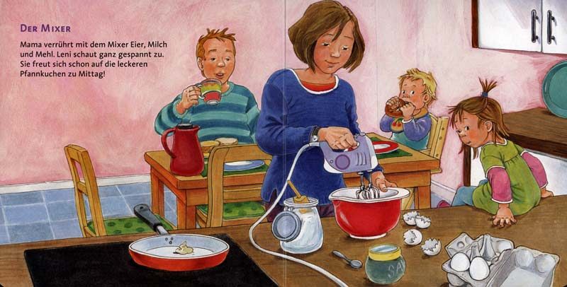 Vom Aufstehen bis zum Schlafengehen - überall bei uns zu Hause gibt es Dinge, die Geräusche machen. Das Klingeln des Weckers, das Surren von Papas Rasierapparat, das Dröhnen der Bohrmaschine und der laut brummende Staubsauger. Entdeckst du noch mehr Geräusche?
