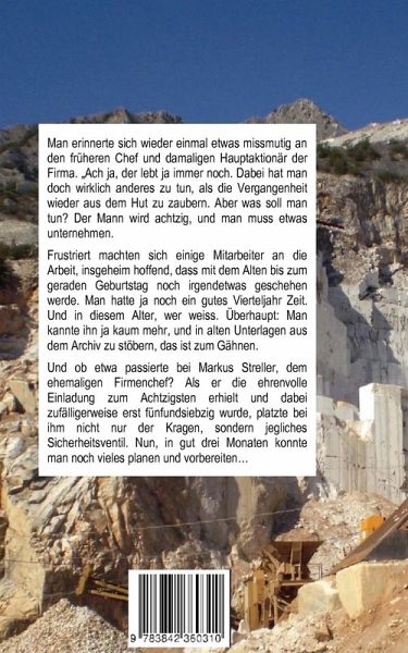 Man erinnerte sich wieder einmal etwas missmutig an den früheren Chef und damaligen Hauptaktionär der Firma. "Ach ja, der lebt ja immer noch. Dabei hat man doch wirklich anderes zu tun, als die Vergangenheit wieder aus dem Hut zu zaubern. Aber was soll man tun? Der Mann wird achtzig, und man muss etwas unternehmen". Frustriert machten sich einige Mitarbeiter an die Arbeit, insgeheim hoffend, dass mit dem Alten bis zum geraden Geburtstag noch irgendetwas geschehen werde. Man hatte ja noch ein gutes Vierteljahr Zeit. Und in diesem Alter, wer weiss. Überhaupt: Man kannte ihn ja kaum mehr, und in alten Unterlagen aus dem Archiv zu stöbern, das ist zum Gähnen.Und ob etwa passierte bei Markus Streller, dem ehemaligen Firmenchef? Als er die ehrenvolle Einladung zum Achtzigsten erhielt und dabei zufälligerweise erst fünfundsiebzig wurde, platzte bei ihm nicht nur der Kragen, sondern jegliches Sicherheitsventil. Nun, in gut drei Monaten konnte man noch vieles planen und vorbereiten...