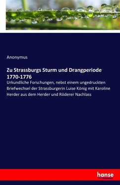 Zu Strassburgs Sturm und Drangperiode 1770-1776 - Urkundliche Forschungen, nebst einem ungedruckten Briefwechsel der Strassburgerin Luise König mit Karoline Herder aus dem Herder und Röderer Nachlass ist ein unveränderter, hochwertiger Nachdruck der Originalausgabe aus dem Jahr 1888.