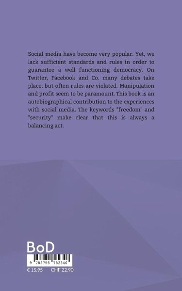 Social media have become very popular. Yet, we lack sufficient standards and rules in order to guarantee a well functioning democracy. On Twitter, Facebook and Co. many debates take place, but often rules are violated. Manipulation and profit seem to be paramount. This book is an autobiographical contribution to the experiences with social media. The keywords "freedom" and "security" make clear that this is always a balancing act.