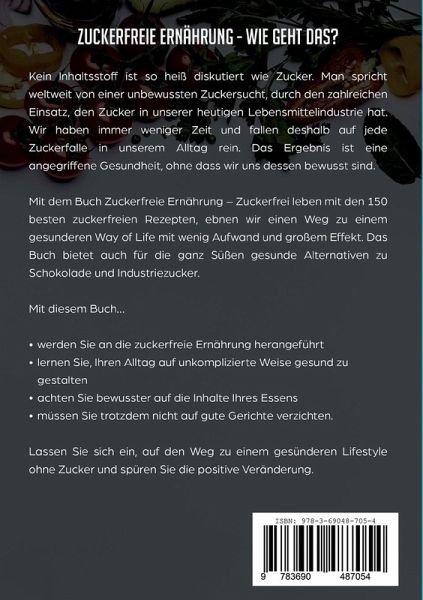 ZUCKERFREIE ERNÄHRUNG: Zuckerfrei leben mit den 150 besten zuckerfreien Rezepten für das Kochen ohne Zucker. Zuckersucht beenden durch gesunde Ernährung - inklusive gesunden Süßigkeiten und Nährwertangaben Möchten Sie der Zuckerindustrie mit dem praktischen Rezeptbuch für ein Leben ohne Zucker den Kampf ansagen? Sie wollen lernen, wie man eine zuckerfreie Ernährung in den Alltag einbauen kann, ohne großen Aufwand? Dieses Buch lässt Sie ein Gespür dafür entwickeln, wie Sie Zuckerfallen im Alltag enttarnen und Ihren Einkauf bewusster gestalten. 150 Rezepte, die Ihnen eine gesunde, zuckerfreie Ernährung näherbringen und Ihre Gesundheit auf ein neues Level stufen. Nach nur wenigen Tagen auf Zuckerentzug werden Sie merken, wie sehr die Zuckersucht Ihre Vitalität beeinträchtigt hat. Danach können Sie sich ein Leben ohne Zucker nicht einfacher vorstellen. Dieses Buch richtet sich an alle, die ... - unkomplizierte, gesunde Rezepte suchen, - ein neues, gesundes Lebensgefühl kennenlernen wollen, - bewusster genießen wollen, - dabei zugleich ein verbessertes Körpergefühl erleben wollen, durch essen ohne Zucker - und die sich auch über die positiven Nebeneffekte wie Gewichtsverlust und ein verbessertes Hautbild erfreuen. In diesem Buch sind sowohl Rezepte, wie auch Informationen, die Ihnen den Sinn eines Zucker-Detox plausibel machen können. Ob Jung oder Alt, Ernährungsexperte oder Laie, jeder kommt hier auf seine Kosten. Keine komplizierten Erklärungen, die Ihnen eine Ernährungsumstellung aufdrängen wollen, sondern einfach Clean Eating at its best. Gestalten Sie Ihre Ernährung zuckerfrei. Vielseitige Rezepte, egal ob Sie für den Nachmittagsklatsch zuckerfrei backen oder einen Mädelsabend ohne Zucker bewirten wollen. Gesunde Süßigkeiten für alle Geschmäcker, natürlich auch für eine gesunde Ernährung für die Kleinsten geeignet. In diesem Rezeptbuch erhalten Sie unter anderem... - eine lehrreiche Einführung in die komplexe Welt des Zuckers, - die 150 besten zuckerfreien Rezepte, geeignet für jeden Alltag - gute Alternativen zu Süßigkeiten aus Industriezucker, - sowie Nährwertangaben zu den einzelnen Gerichten. Das zuckerfreie Rezeptbuch beinhaltet viele Rezepte, die die Ihnen eine Ernährungsumstellung in eine zuckerfreie Welt schmackhaft machen! Dank vieler Zusatzinformationen werden Sie zum Experten im Erkennen von Zucker in all seinen Varianten. Zuckerfreie Ernährung ist eine schmackhafte Angelegenheit. Überzeugend sind beispielsweise die Rezepte für: Müsli mit Mango, Kaiserschmarrn, Chiasamen-Joghurt, Kartoffelauflauf, Erdnussbutter-Schoko-Traum, ... was natürlich nur ein Bruchteil aus den vorhandenen Rezepten, für jede Tageszeit, ist. ;-) Das Zuckerfreie Ernährung-Kochbuch ist ein umfangreiches Werk für die einfache Ernährungsumstellung. Perfekt für jeden, der dem Zucker entsagen möchte. Mit den detailreichen Informationen und den Rezepten für Jedermann können Sie die ganze Familie vom Zucker lossagen, ohne dass es Ihnen an etwas fehlen wird. Mit dem Buch für die Zuckerfreie Ernährung finden Sie auch den perfekten Einstieg in andere Ernährungsweisen, wie z.B. Clean Eating oder Vegan oder um einfach einen kleinen Detox vom Zucker zu machen. Nutzen Sie dieses Buch für ein besseres Lebensgefühl und genießen Sie Ihren neuen Lifestyle.
