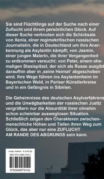 Die Geheimnisse des deutschen Asylverfahrens und die Unwägbarkeiten der russischen Justiz vergrößern nur die Absurdität ihrer ohnehin schon scheinbar ausweglosen Situation. Schließlich zeigen den Charakteren zwischenmenschliche Höhen und Tiefen ihren Weg zum Glück, das aber nur eine ZUFLUCHT AM RANDE DES ABGRUNDS sein kann.