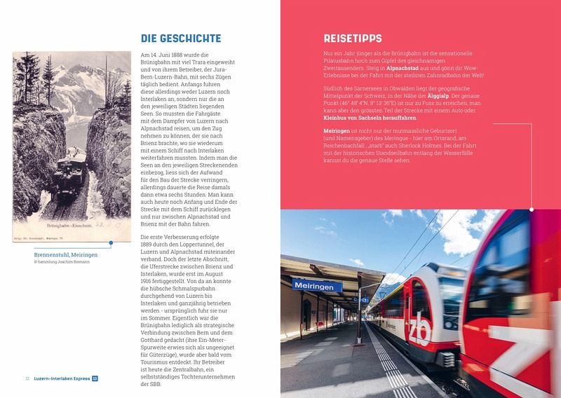 Luzern-Interlaken Express, Bernina Express, Centovallibahn oder Strecken wie Basel-Delle - das Bahnland Schweiz hat an Zügen und Naturschönheit einiges zu bieten. Mit dem Schweiz-Experten, Journalisten und preisgekrönten Reiseautor Diccon Bewes erfährt ihr alles zur Geschichte und Technik hinter den einzelnen Bahnen und den Orten, dies sie verbinden.Begleitet ihn auf seinen Fahrten durch grüne Täler, neben schneebedeckten Gletschern und entlang kristallklarer Seen und entdeckt die Schweiz, wie ihr sie noch nie zuvor gesehen habt. Ob in Bergbahnen, auf Schmalspurstrecken, Panorama-Bahnlinien oder alltäglichen Pendlerstrecken, mit diesem Buch führt euch Diccon durch das ganze Land und hilft euch mit praktischen Tipps, Karten und inspirierenden Fotos, eure Reise zu planen. Folgt seinen Insider-"Triptipps" und macht das beste aus eurer Fahrt, indem ihr den Platz mit der schönsten Aussicht wählt, die Kamera an den beeindruckendsten Stellen für einen Schnappschuss bereit hält und ausgerüstet mit Ideen für Aktivitäten entlang jeder Strecke.Springt auf, lehnt euch zurück und erkundet das Herz Europas und seine beeindruckenden Naturschönheiten auf die gemütliche Art!
