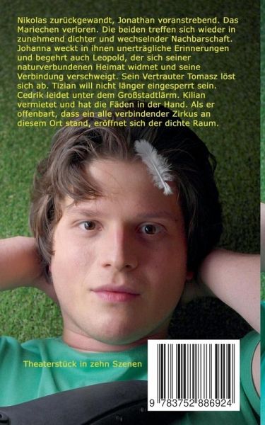 Tragische Komödie und Theaterstück in zehn Szenen.Nikolas zurückgewandt, Jonathan voranstrebend. Das Mariechen verloren. Die beiden treffen sich wieder in zunehmend dichter und wechselnder Nachbarschaft. Johanna weckt in ihnen unerträgliche Erinnerungen und begehrt auch Leopold, der sich seiner naturverbundenen Heimat widmet und seine Verbindung verschweigt. Sein Vertrauter Tomasz löst sich ab. Tizian will nicht länger eingesperrt sein. Cedrik leidet unter dem Großstadtlärm. Kilian vermietet und hat die Fäden in der Hand. Als er offenbart, dass ein alle verbindender Zirkus an diesem Ort stand, eröffnet sich der dichte Raum.Gerade angekommen, schon wieder weggezogen. Es zieht sie voran und es zieht sie zurück. Die Sprache nah und fern. Die Musik klassisch instrumental und live im Schlagzeug präsent. Im Winter begonnen, im Frühjahr beendet.