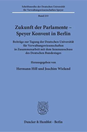 Beim 1. Speyer Konvent in Berlin erörterten Dozentinnen und Dozenten aus der Universität und dem Forschungsinstitut Speyer aktuelle Fragen zur Zukunft der Parlamente. Neben interdisziplinären Überlegungen zur aktuellen Situation und zu bestehenden Spannungsfeldern der Parlamente in Deutschland, Italien und Großbritannien setzten sich die Autoren auch mit dem Einfluss von neuen Herausforderungen wie der Globalisierung, der VUCA World (Volatility, Uncertainty, Complexity, Ambiguity) und der Nutzung algorithmischer Verfahren auseinander. Die innerdeutsche Perspektive ist zudem abgebildet durch Überlegungen zur Rolle der Parlamente in der Funktionsordnung des Grundgesetzes, zum Verhältnis der repräsentativen Demokratie zur Bürgerbeteiligung, zum parlamentarischen Einfluss während der Flüchtlingskrise und zum Umgang mit dem demografischen Wandel.